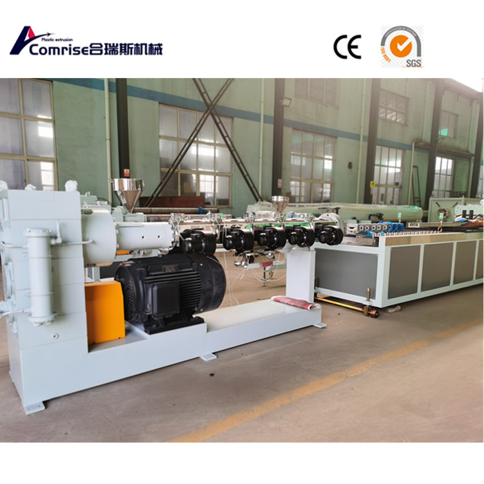A Compise Door és az ablakpanel profilkészítő gépe folyamatosan extrudálhatja a hosszú PVC profilokat stabil sebességgel.