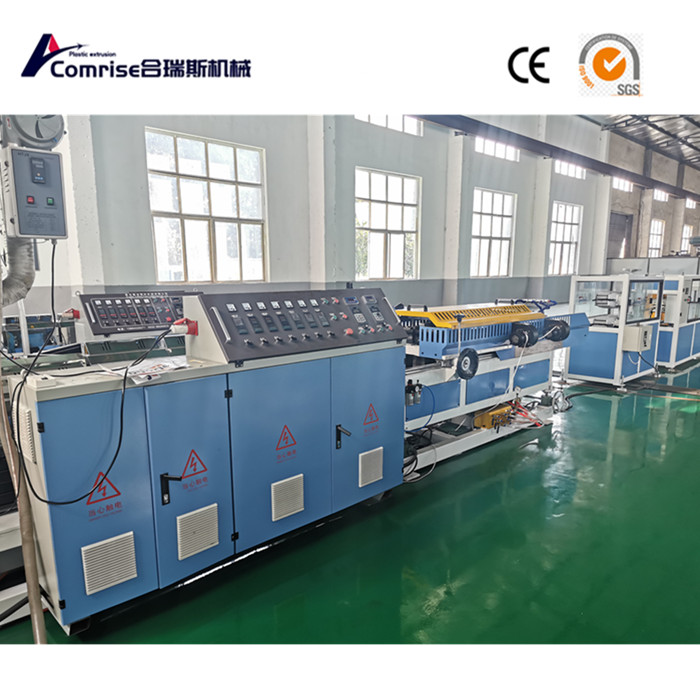A teljes berendezéskészlet SJ sorozatú egy csavaros extruderből → extrudálási szerszám → spirál formájú szerszám → vákuumpermet víztartály → vontatási gép → fűrészgép → fordított platform.